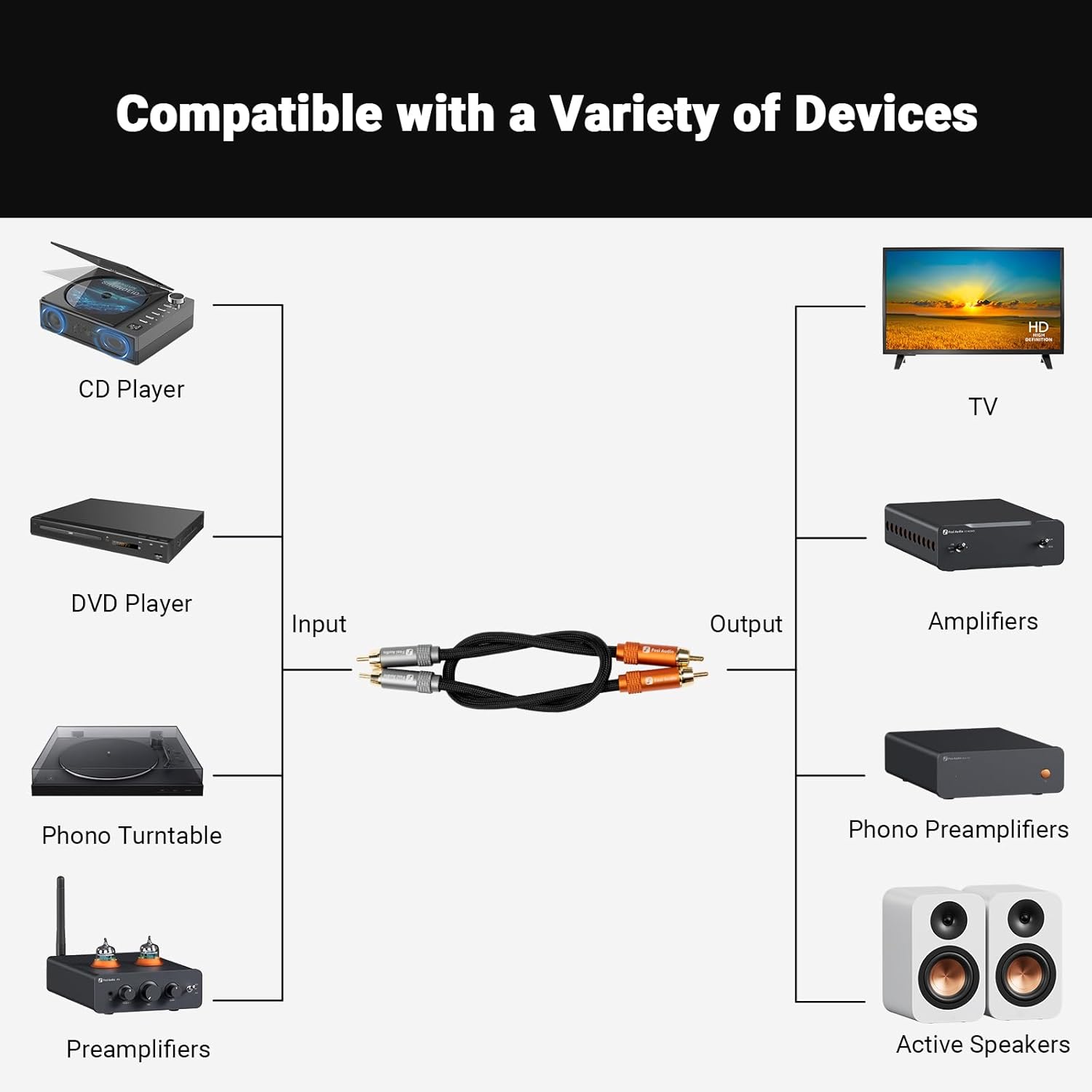 - Versatile Compatibility: Works with amplifiers, preamplifiers, turntables, active speakers, and any device with RCA inputs/outputs