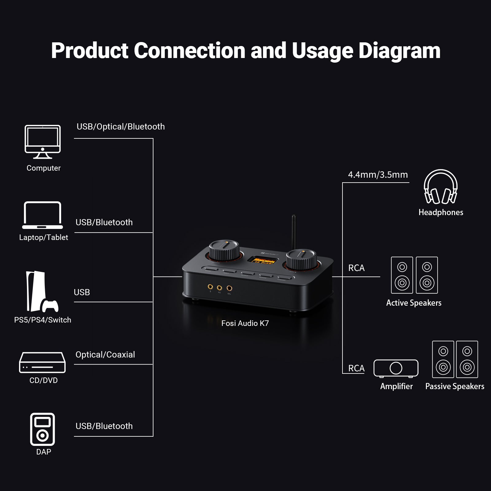 Whether you're gaming, listening to music, or watching movies, the K7 brings out the best in your headphones with clarity, power, and convenience.